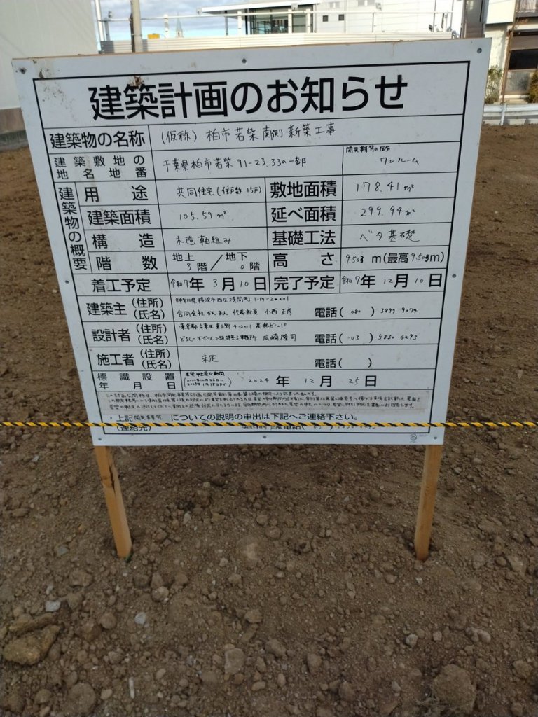 (仮称)柏市若柴南側新築工事の建築計画を公開中